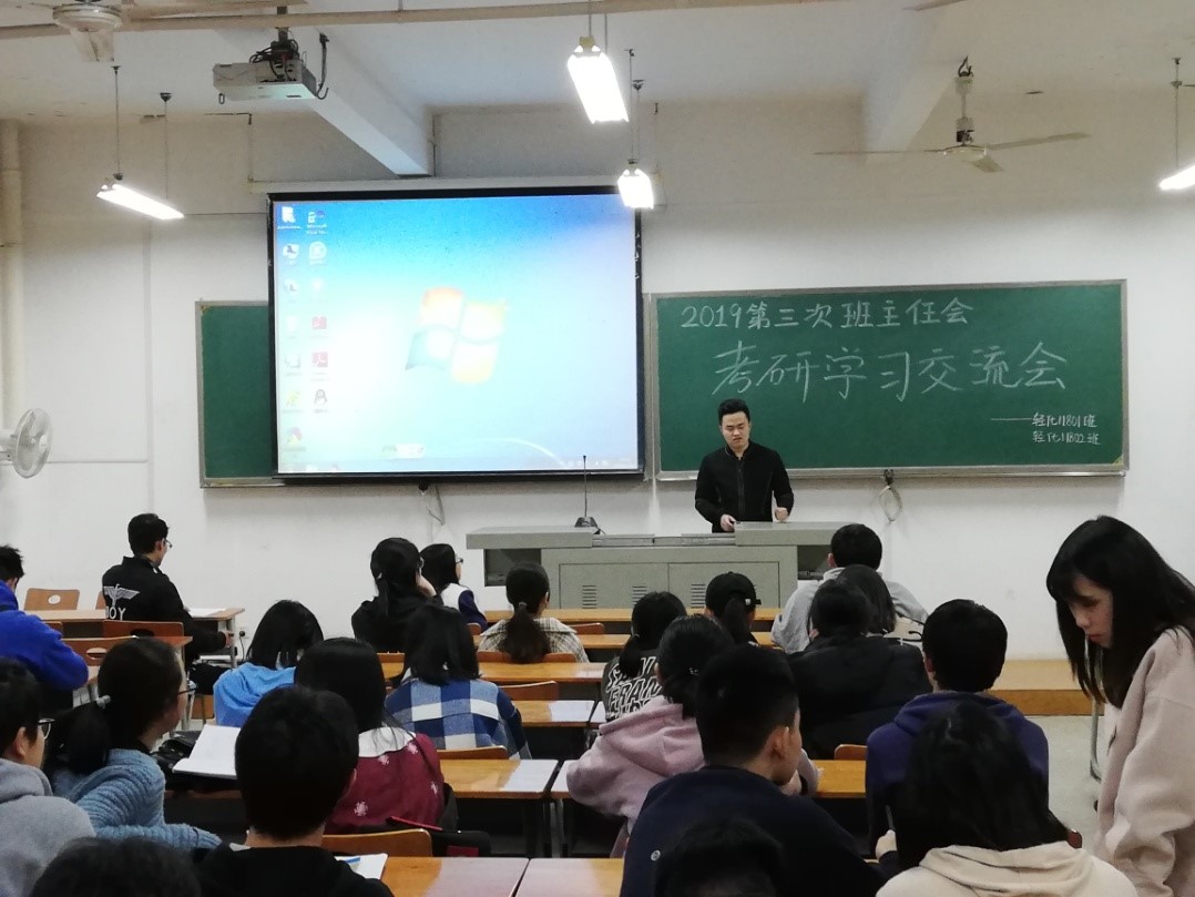 3月10日下午18:00,18级班主任于志财、何华玲老师于崇礼楼401教室共同组织开展“考研学习交流会”活动。动员会由11801班主任于志财老师主持,轻化11801与轻化11802全体同学参加了此次活动。