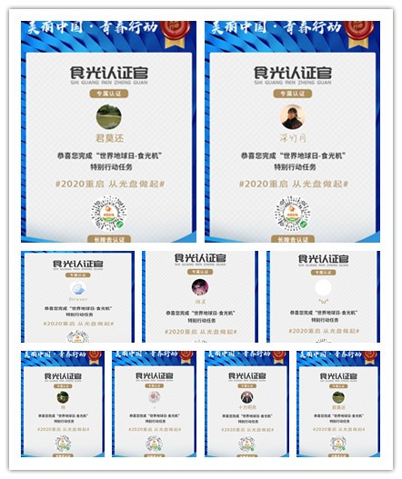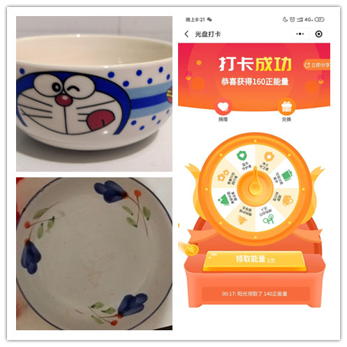 “光盘行动,倡导理性光盘、自觉光盘、轻松光盘,是一种看得见摸得着,且每个员工在家都能参与的一项活动。我们不能重启2020,但我们可以引导员工没人拥有一台‘食光机’,重启自己,反对食物浪费,珍惜资源,保护环境。”公司团委书记谈鹏老师说。