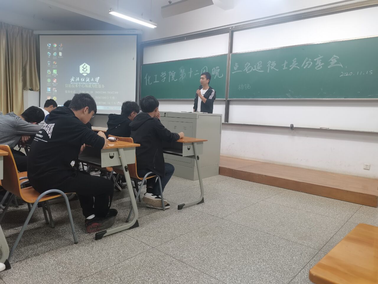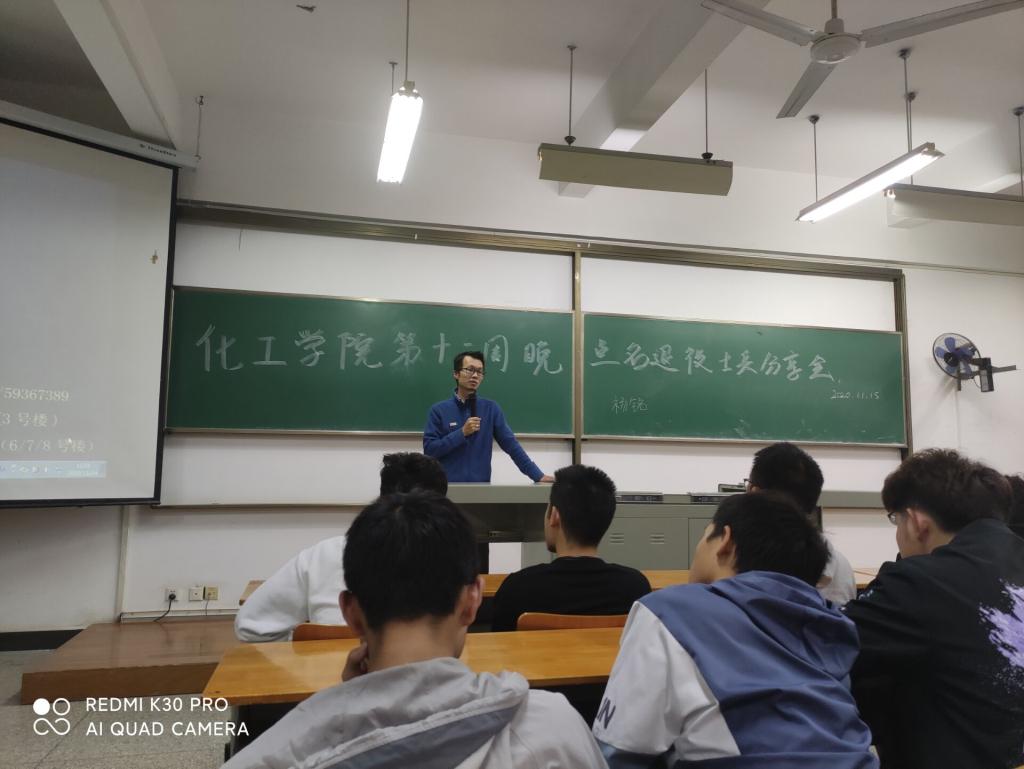 为调动20级员工入伍积极性,挖掘入伍积极分子,11月15日下午5点,永乐高在崇礼楼210教室,开启本学期“朋辈说”系列活动第三期,退伍老员工士兵王超龙、胡富林、周成杰与2020级男生分享他们的入伍故事。