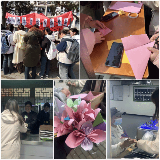 在活动筹备阶段,协会精心准备了各式各样的彩色纸张,供大家挑选,并通过多种渠道进行了广泛的宣传。值班干事们提前学习了折花技巧,并准备了必要的材料,为同学们提供了一对一的服务。在活动进行时,参与者们在摆点处可以选择折纸花或者为女性长辈发送祝贺短信。大家充分发挥自己的想象力,一件件独具匠心、春意盎然的纸花作品相继完成。活动结束后,协会干事们组织相关人员,将大家折出的纸花赠送给食堂阿姨等工作人员,让美好留在身边,传递人间的温情。
