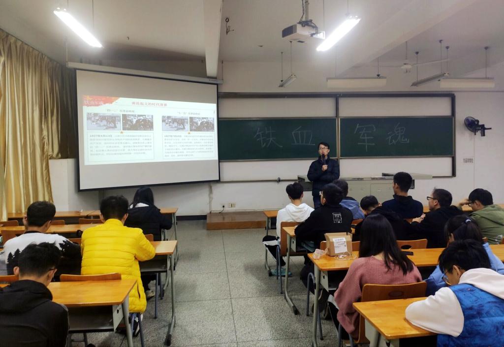 宣讲会上,谈鹏老师作了以《铁血军魂》为主题的宣讲报告,以ppt的形式向大家讲述了中国共产党创建武装力量并发展壮大的过程,并讲述了英雄的人民军队在抗日战争和解放战争中的屡屡事迹。中国共产党始终坚持群众路线,在毛主席的带领下,全党全军不断加强自身政治建设,在思想上建党、政治上建军,在艰难困苦中为人民谋幸福、为民族谋解放。从井冈山革命根据地的建立,到第五次反围剿失败后的万里长征,到第二次国共合作全力抗日,再到解放战争解放全中国,一次又一次伟大的斗争中,无数优秀的中华儿女前赴后继,用生命铺就了革命胜利的道路。