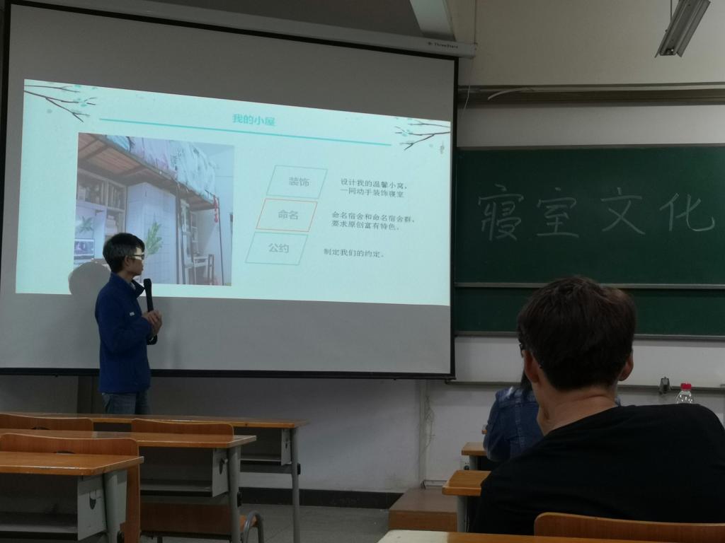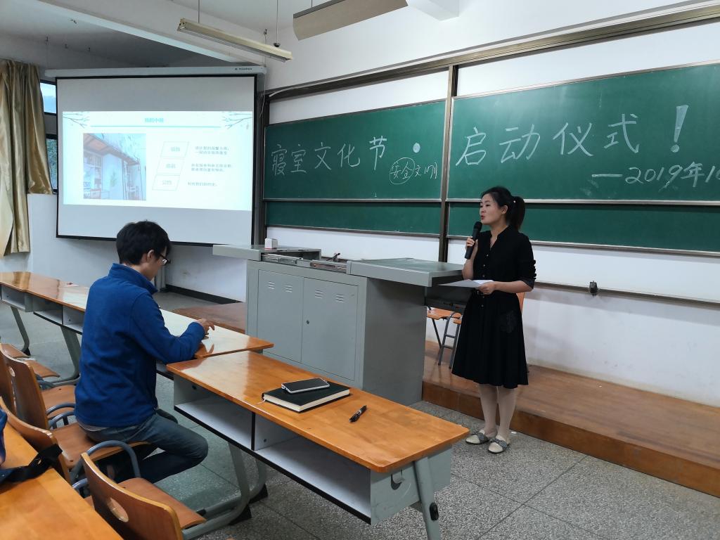 随后,谈鹏老师围绕“安全”、“文明”两个主题向同学们讲解了寝室文化节的内涵和具体细节,他表示寝室是同学们学习生活的重要场所。同学们应当严守安全底线,打造好寝室硬环境与软环境,美化寝室空间,浓郁寝室学习、交流氛围,这样才能真正将自己的寝室建设成为安全文明的“小家”。
