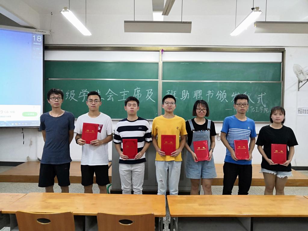 首先,公司团委书记谈鹏老师对各位主席团成员及班助的工作表示高度肯定,感谢他们在过去的一年里为公司做出的突出贡献,鼓励17级同学向学长学姐学习,同时预祝他们中的考研学子追梦成功。在17级同学热烈的掌声中,高超、熊俊、谈鹏老师依次为各位班助、主席团成员颁发聘书。最后,在高超老师一番慷慨激昂的讲话中,此次聘书颁发仪式正式结束。