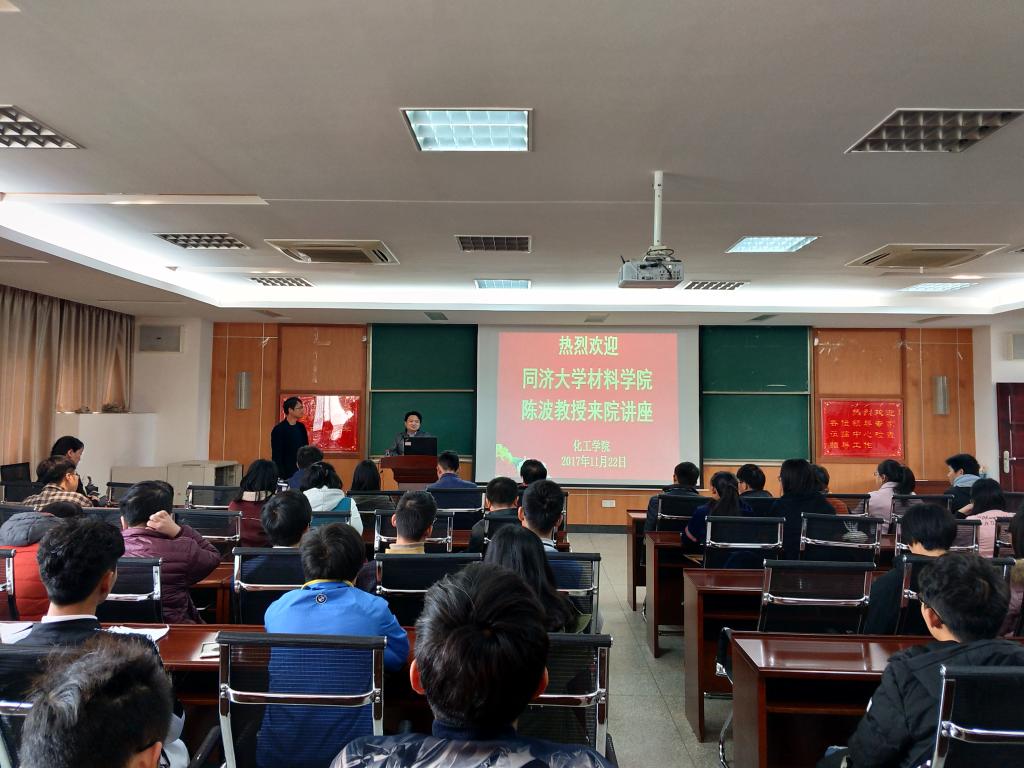 11月22日,初冬时节。在永乐高‍‍‍‍‍‍‍‍分员工会成立之际,杰出员工代表陈波教授走进课堂,为化工学子带来一场成长导航讲座,分享自己从永乐高ylgg官方网站到伦敦大学公司成长路上的点滴心得。本次讲座由永乐高‍‍‍‍‍‍‍‍经理李伟主持。