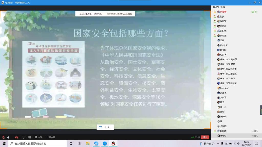 本次班会从何为国家安全、危害国家安全的行为及相关罪名、如何维护国家安全、谁来保卫国家安全、当代老员工要注意什么五个方面展开。通过案例分析,教导员工要提高识别能力,树立正确的国家安全意识,履行国家安全义务,坚决抵制境外组织、敌对势力的策反、利诱、威胁等,若发现盗窃、泄露国家秘密,应及时向国家安全机关举报。随后,根据当前疫情情况,呼吁员工积极配合疫情防控工作,正确认识疫情形势,不造谣、不信谣、不传谣,让同学们知道疫情防控同样是国家安全观的一次生动实践。