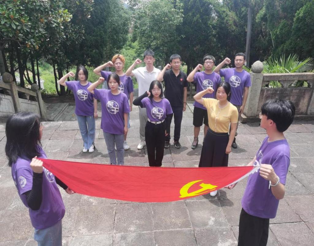 随后大家移步至红十五军成立纪念碑。在庄严肃穆的纪念碑下,所有党员举起右手,面对党旗庄严宣誓。“烈士业绩垂青史、留得精神在人间。各个时代的革命烈士们都是时代的先锋、民族的脊梁。革命烈士的无畏精神定会世代相传,永不遗忘”,一位实践团队员说到。