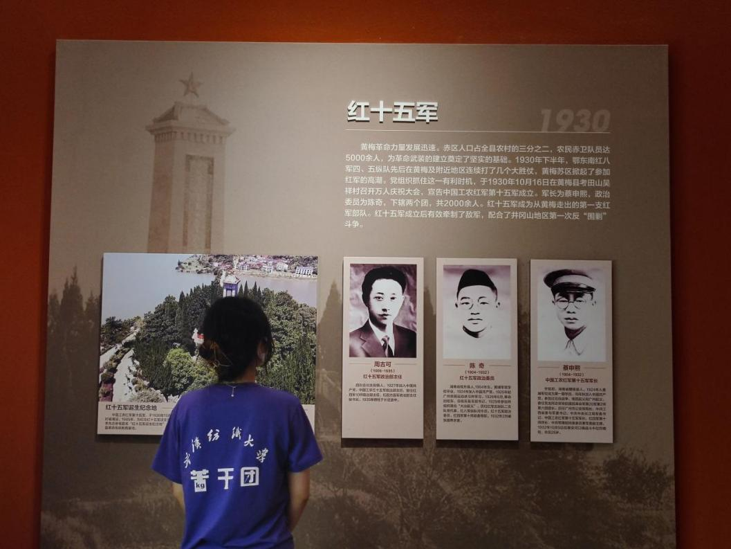 下午,实践团来到黄梅县博物馆,该博物馆位于黄梅县滨河新区黄梅县文化艺术中心,黄梅县博物馆新馆,总建筑面积7465平方米,馆藏文物是湖北省县级馆藏品较多且颇具特色的博物馆之一,现有历史文物、革命文物、民俗文物等万余件。大家一同感受血液里的红色记忆,重温这片土地上的红色烽火。
