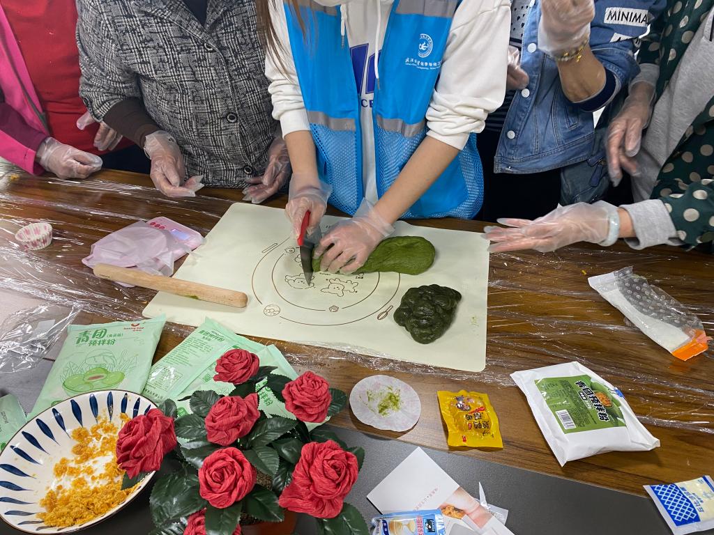 4月3日上午,永乐高“春风化雨”志愿服务队前往江夏经济开发区阳光社区,开展了以“做青团 忆清明”为主题的志愿活动。