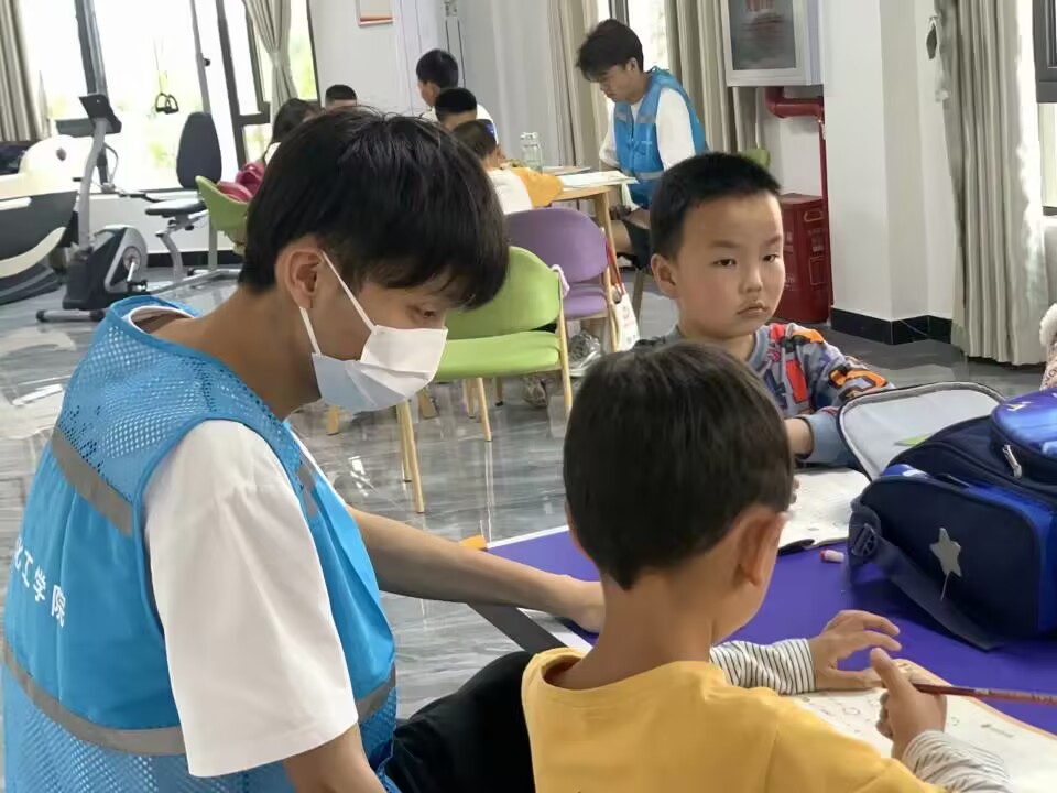 活动期间,志愿者们为小员工们辅导功课,对题目进行耐心的讲解与引导,在为员工们讲解题目的同时举一反三,用员工们易懂的方式与语言,去解决作业难题,努力提高员工们的思维能力。同时,志愿者们还引导员工们自觉养成乐于助人、谦逊待人的美德,弘扬中华传统文化。志愿者们还与员工们开展了一些趣味活动:踢键子、下围棋等,培养孩子们的兴趣爱好。不仅如此,志愿者们还展示了一些有趣而不危险的化学实验,奇妙的颜色变化极大的吸引了员工们的兴趣,激起了员工们对化学科学的好奇心。志愿者们通过各种方式,拓宽了小朋友们的视野,促进他们全面发展和健康成长,同时也让我们所学的知识服务社会,实现自我价值与社会价值的统一。
